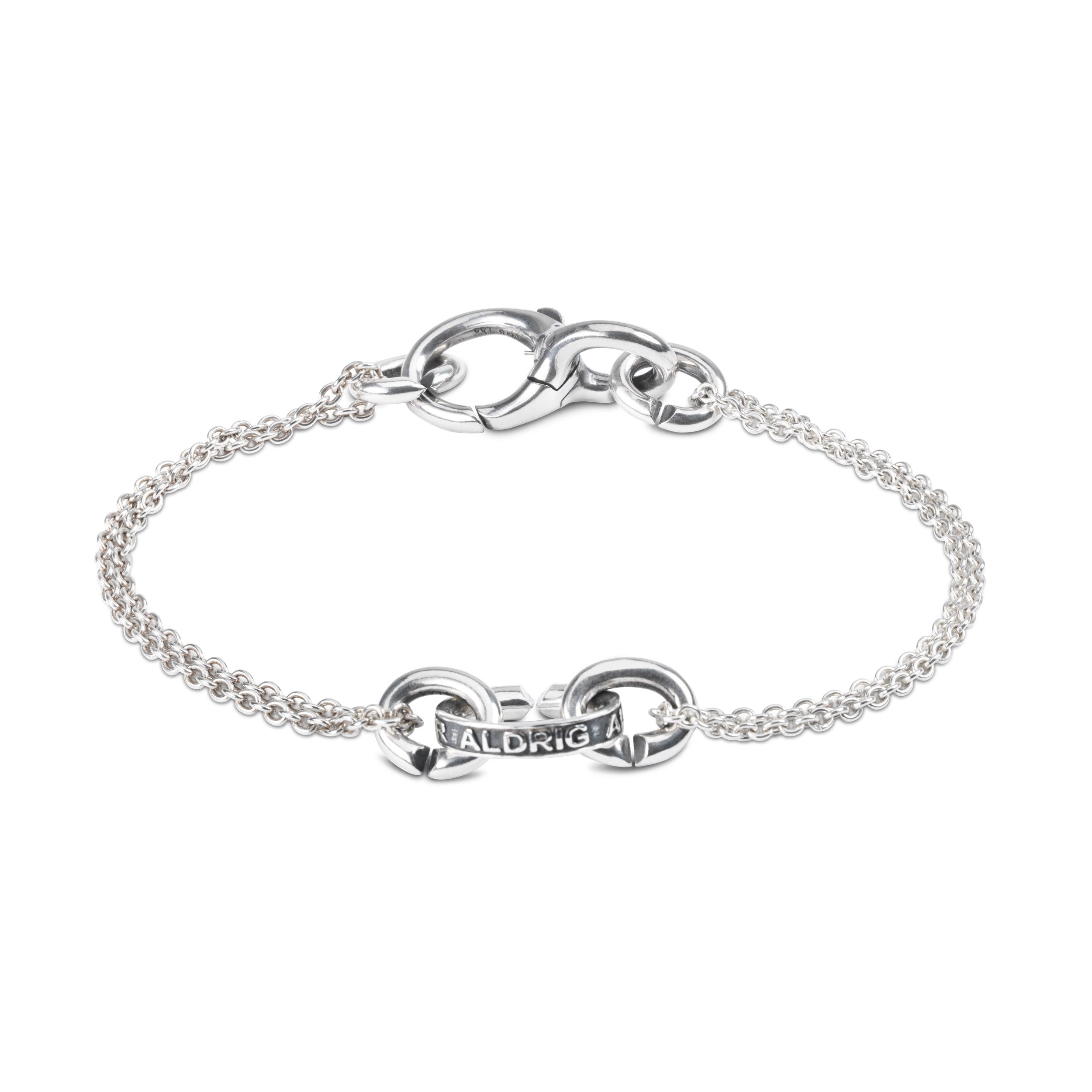 Helsematilde is a Danish blogger and true power-woman. She has created a community around her mantra 'du er aldrig alene' (eng. ‘you are never alone’) to help fight loneliness. Matilde has designed a single silver link with these words- to remind herself and others that you are never alone. The Never Alone, single silver link is now available and you can use it in your own bracelet- and earring designs.